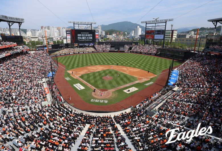 하지만 신구장 첫해 홈경기 연속 매진이 이어지며 한화가 리그의 새 역사를 계속해서 써내려가고 있다. 이날까지 27번 열린 홈경기의 총 관중은 45만6268명으로, 경기당 평균 1만6898명이 입장했다. 매진이 되지 않은 경기는 단 3경기, 좌석점유율은 99.4%에 달한다.