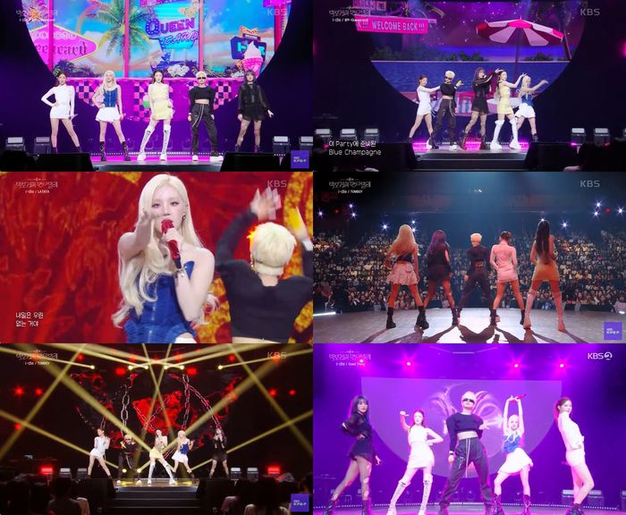 ‘노 브레이크, 킵 고잉!’ 주제로 꾸며진 이날 방송에서 아이들은 데뷔곡 ‘LATATA’로 시작을 알리며 열띤 호응을 이끌었다. 이어 히트곡 ‘퀸카 (Queencard)’와 ‘TOMBOY’를 열창한 아이들은 킬링 파트에서 마이크를 관객석으로 넘기며 팬들과 하나 되는 퍼포먼스로 떼창을 불러일으켰다.