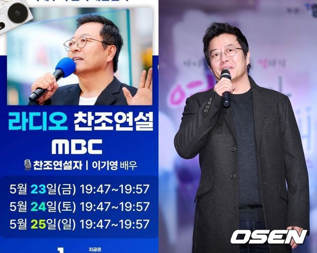 이기영은 24일 개인 SNS를 통해 지난 23일부터 오는 25일까지 MBC 라디오를 통해 이재명 후보를 지지하는 찬조연설을 맡았다고 밝혔다.