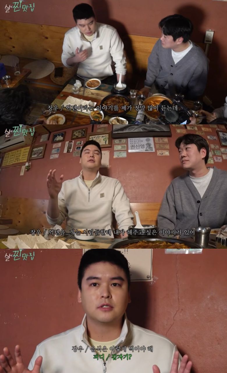 다소 과장된(?) 듯한 먹방 리액션에 PD가 "이건 좀 억텐(억지 텐션)"이라고 지적하자, 이장우는 "억텐을 까는 사람들한테 내가 해주고 싶은 이야기가 있다"며 입을 열었다.