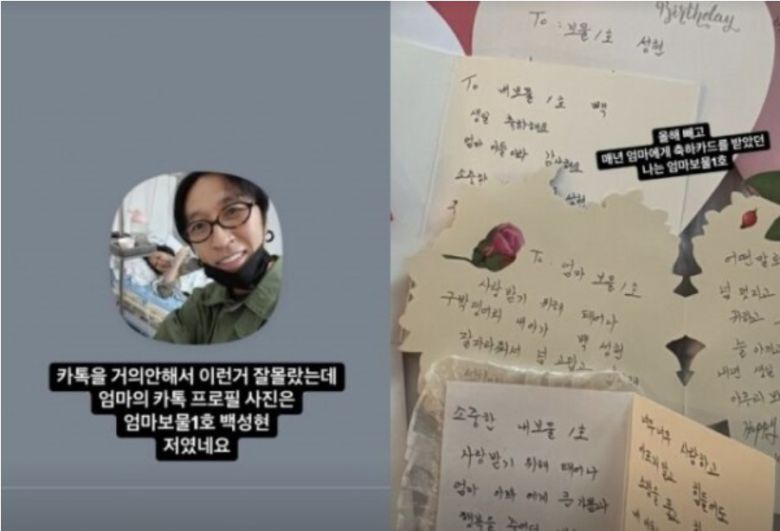 빽가는 “엄마의 카톡 프로필 사진은 ‘엄마 보물 1호 백성현’ 저였다”라고 덧붙여 뭉클함을 안겼다.