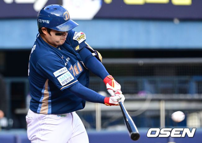 [OSEN=잠실, 조은정 기자]24일 오후 서울 잠실구장에서 2025 신한 SOL Bank KBO리그 두산 베어스와 NC 다이노스의 경기가 열렸다.두산은 최원준을 NC는 라일리를 선발 투수로 내세웠다.4회초 2사 NC 권희동이 안타를 날리고 있다. 2025.05.24 /cej@osen.co.kr |