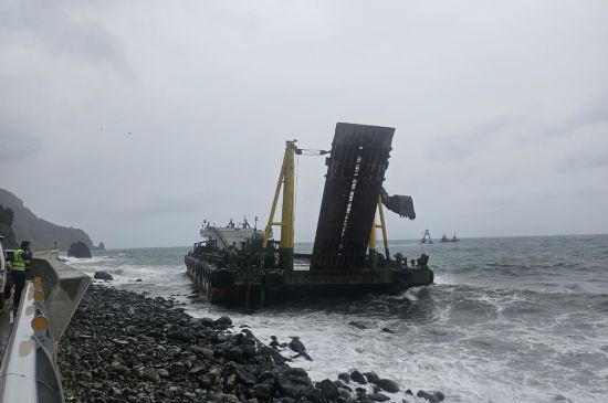 24일 아시아경제 취재를 종합하면 이날 오후 2시 30분께 울릉읍 사동리의 공항 건설공사 현장 앞바다에 정박 중인 바지선이 일주도로 앞 해변(물래치기 해변)으로 떠밀려 선박 하부가 암초에 닿아 움직일 수 없게 됐다.