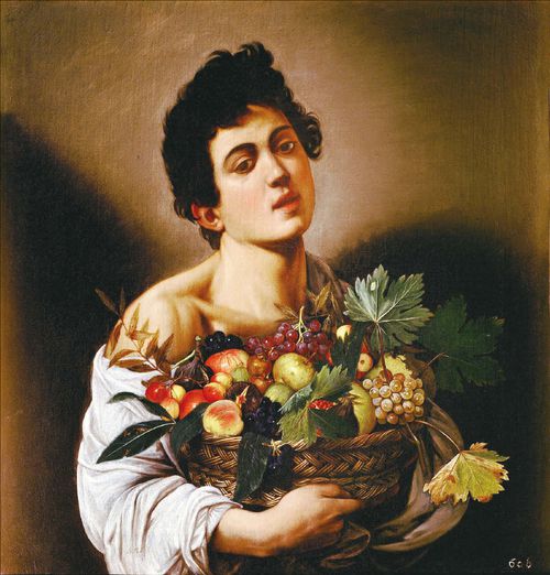 과일 바구니를 든 소년, 1593년, 카라바조, 유화, 70×67㎝, 로마 보르게제 미술관. |