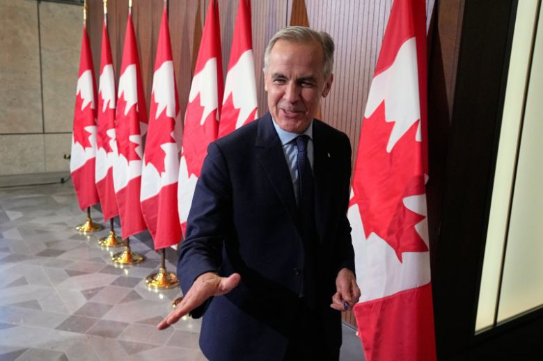 마크 카니 캐나다 총리가 지난 21일 온타리오주 오타와에서 열린 기자 회견에서 언론과 대화하고 있다. AP 연합뉴스