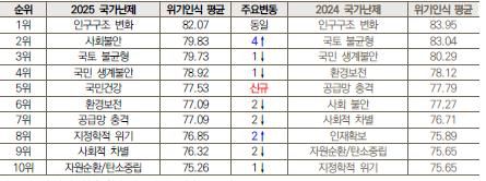 지정학적 위기와 같은 최근 주목도가 높은 문제도 지난해보다 두 단계 높은 8위를 기록했다.