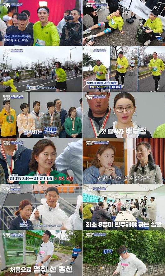 24일 방송된 MBN 개국 30주년 특별기획 ‘뛰어야 산다’ 6회에서는 ‘선셋 마라톤’ 10km의 최종 결과가 공개됐다. 이날 양소영과 배윤정은 자신의 종전 기록을 단축시키지 못해 탈락자로 호명됐으며, 이들의 부활을 위해 ‘뛰산 크루’는 처음으로 ‘하프 마라톤’에 도전해 그 결과에 초미의 관심이 집중됐다.