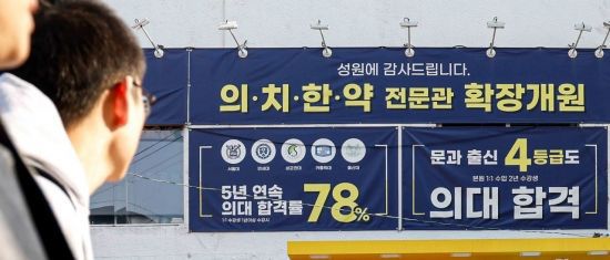 종로학원은 "의대의 경우 정시 합격 점수가 국·수·탐 평균 2등급까지 하락한 대학도 발생했다"고 말했다.