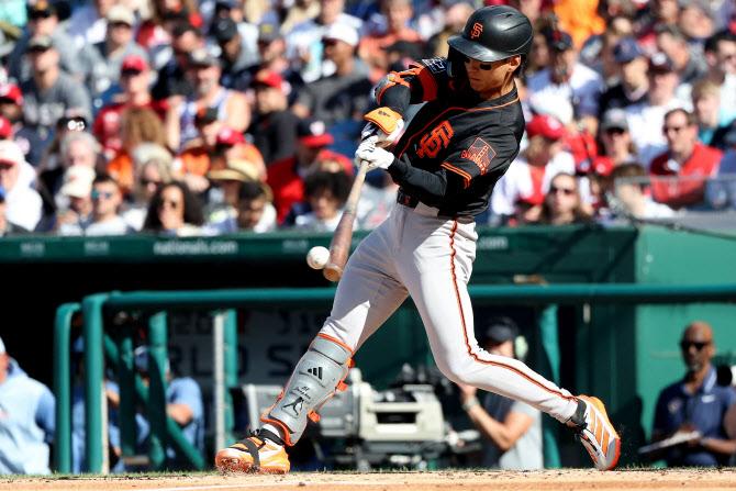 샌프란시스코 자이언츠의 이정후가 워싱턴 내셔널스와 경기에서 안타를 때리고 있다. 사진=AFPBBNews |