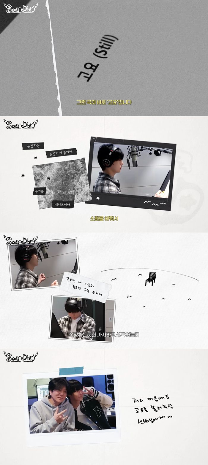 소속사 SM엔터테인먼트는 25일 NCT 도영의 두 번째 앨범 ‘Soar’ 두 번째 앨범 수록곡 ‘고요 (Still)’를 소개했다. ‘고요 (Still)’는 서정적인 피아노와 무게감 있는 스트링, 모던한 밴드 사운드가 깊은 울림을 자아내는 팝 록 장르의 곡이다. 현실과 이상 사이에서 끊임없이 방황하던 이들이 고요한 마음으로 진정한 자신을 찾아가는 과정을 그렸다.