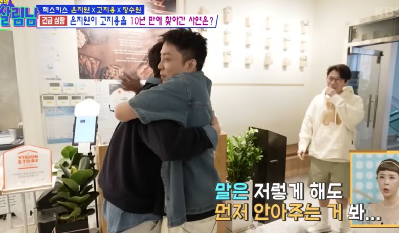 은지원은 고지용을 보자마자 꼭 안아줬고, “잘 지냈어?”라며 반가운 마음을 감추지 못했다. 고지용 역시 환한 표정으로 은지원을 맞이했다.