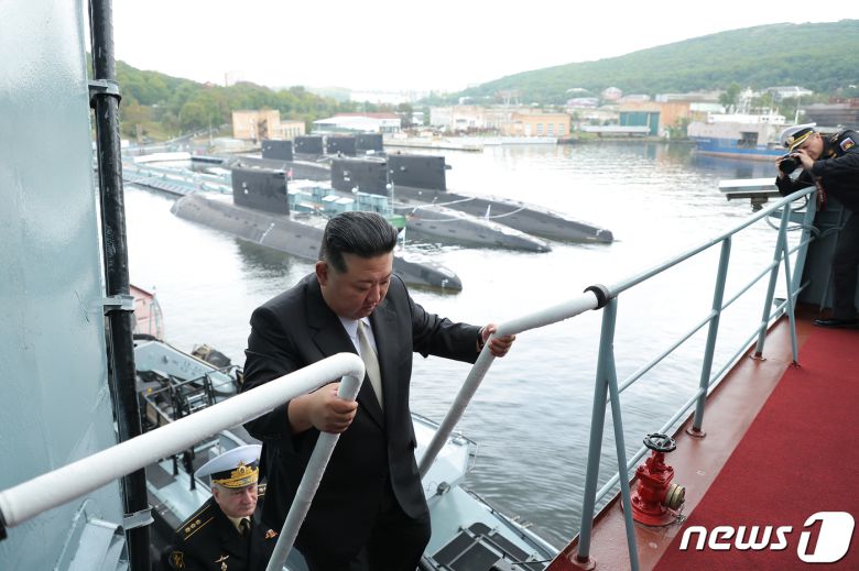 (평양 노동신문=뉴스1) = 김정은 북한 노동당 총비서가 러시아 블라디보스토크 인근 군 비행장 및 해군 기지를 방문한 모습. [국내에서만 사용가능. 재배포 금지. DB 금지. For Use Only in the Republic of Korea. Redistribution Prohibited] rodongphoto@news1.kr
