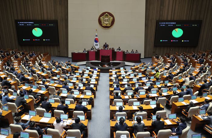 13.8조 추경안, 국회 본회의 통과     (서울=연합뉴스) 류영석 기자 = 1일 국회에서 열린 본회의에서 2025년도 제1회 추가경정예산안이 통과되고 있다. 2025.5.1     ondol@yna.co.kr (끝)