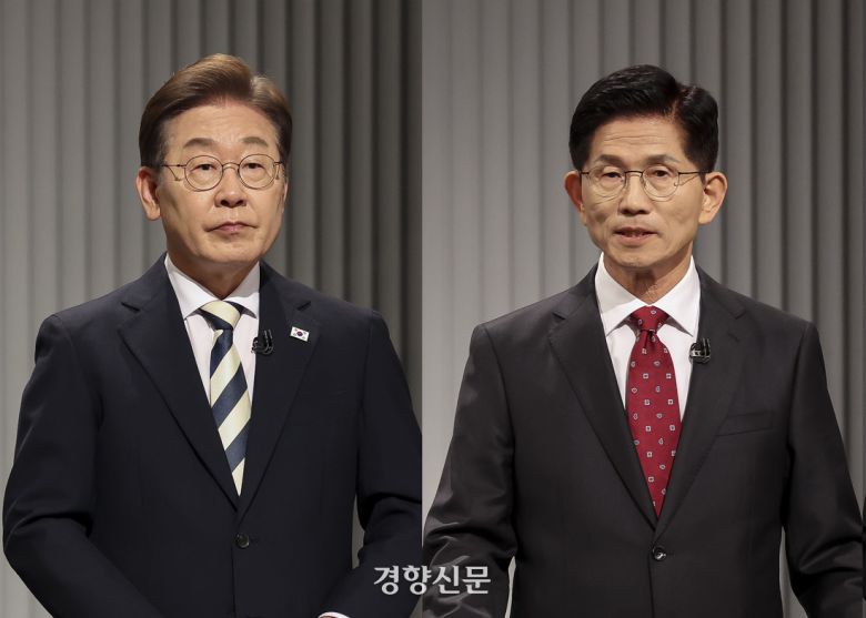 제21대 대통령 선거에 나선 이재명 더불어민주당 후보와 김문수 국민의힘 후보가 23일 서울 여의도 KBS 스튜디오에서 사회 분야를 주제로 2차 TV토론을 하고 있다. 국회사진기자단