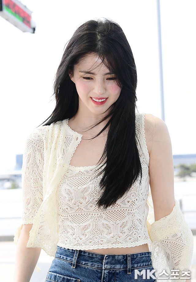 이날 한소희는 아이보리 컬러의 시스루 니트 크롭과 데님 와이드 팬츠로 꾸안꾸 공항패션을 선보이며 등장부터 시선을 집중시켰다.