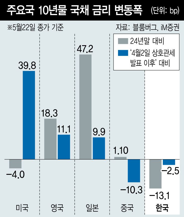 당분간 변동성 장세가 이어질 공산이 커 국내 금융시장에도 부담을 줄 것으로 예상한다. 미국과 주요국 간 관세 협상이 타결되기 전까지 정책 불확실성이 미 국채 금리의 변동성을 키울 수 있고, 미국을 위시한 주요국 재정 리스크도 국채시장 변동성 확대 재료다. 미국은 물론 최근 국채 금리 급등세가 이어지는 일본 국채시장 역시 엔화 환율은 물론 일본계 자금의 이동, 이른바 ‘머니 무브’ 현상을 강화해 글로벌 자산시장의 변동성을 높일 위험이 크다.