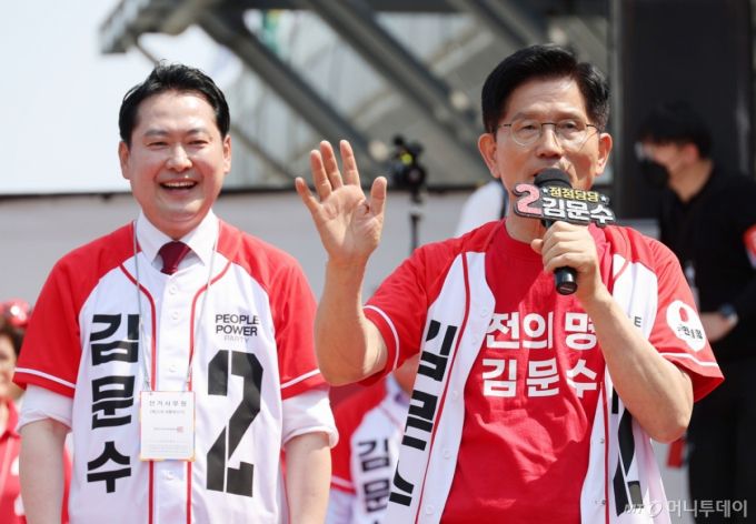 김 후보는 "방탄조끼와 방탄유리 다 벗어던지고 가야 할 곳은 감옥 아니겠느냐"며 "이걸 언제 할 수 있겠느냐. 6월3일에 깨끗한 투표를 통해 부패한 사람은 전부 어디로 보내야겠느냐"고 했다.