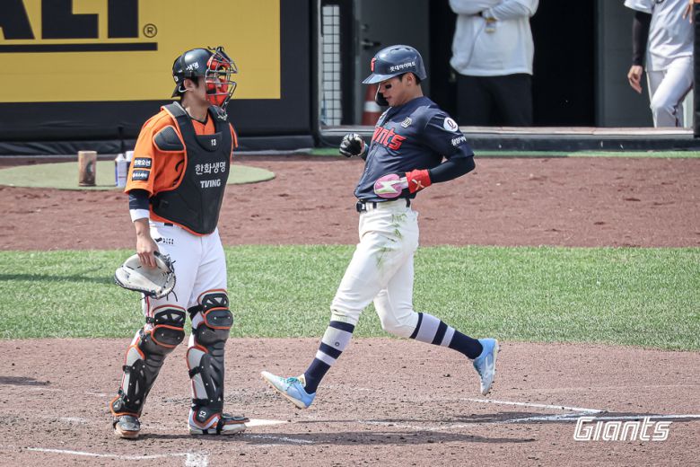 당황스러웠던 분위기를 간신히 수습한 한화는 6회말 간신히 한 점을 뽑아내며 다시 리드를 찾아왔다. 김상수 상대 선두 이원석의 타구가 유격수를 맞고 중전안타가 됐고, 1루를 밟은 이원석은 도루로 2루를 훔친 뒤 최재훈의 땅볼 때 3루까지 도달했다. 그리고 투수가 송재영으로 바뀐 뒤 이도윤의 번트 파울이 나왔으나 2볼-2스트라이크 상황에서 나온 폭투에 이원석이 홈을 파고들어 한화가 7-6을 만들었다.