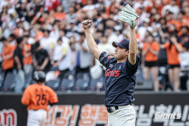 연장 10회초, 마운드에 오른 정우주는 선두 손호영을 몸에 맞는 공으로 허무하게 내보냈다. 손성빈의 희생번트로 1사 2루. 하지만 정우주는 전민재를 헛스윙 삼진으로 돌려세웠고, 장두성까지 좌익수 뜬공으로 잡아냈다.