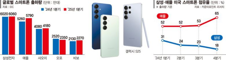 이르면 다음 달 삼성 갤럭시도 미국 관세폭탄에 직면하게 되면서 비상이 걸렸다. 25% 관세폭탄에 미국 시장의 갤럭시 가격이 최고 40% 오를 수 있다는 전망까지 나온다. 매 분기 미국 시장에서 20~30%의 점유율을 확보하고 애플과 경쟁하는 상황에서 삼성이 미국 소비자에게 세금을 그대로 전가하기도 쉽지 않을 것으로 보인다.
