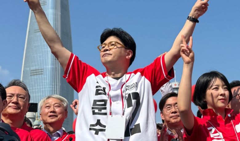 ▲ 국민의힘 한동훈 전 대표가 25일 서울 송파구 일대에서 김문수 대선 후보 지원유세에 나서고 있다.