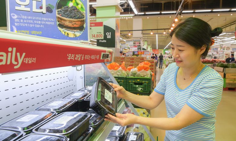 25일 서울 서초구 하나로마트 양재점에서 모델이 올해 처음 출하된 오디를 살펴보고 있다. 농협유통은 이날부터 제철 농산물 ‘생 오디’ 판매를 시작한다고 밝혔다. 대표적인 ‘블랙 푸드’인 오디는 생으로 먹거나 요구르트 또는 우유에 갈아 넣으면 더 맛있게 먹을 수 있다. 농협유통 제공 ⓒ 세상을 보는 눈, 세계일보이 기사의 카테고리는 언론사의 분류를 따릅니다.0공유하기