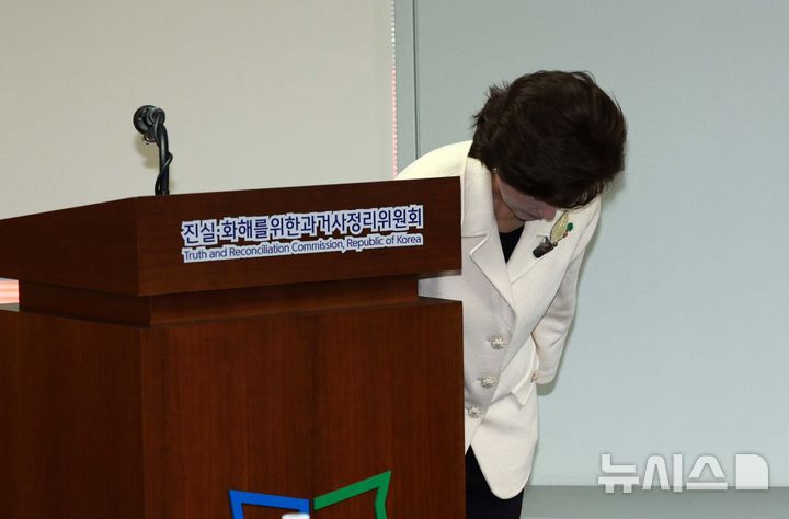 [서울=뉴시스] 고범준 기자 = 박선영 진실화해위원장이 5일 서울 중구 진실화해를위한과거사정리위원회에서 열린 제100차 위원회 기념 기자간담회에 앞서 인사를 하고 있다. 2025.03.05. bjko@newsis.com