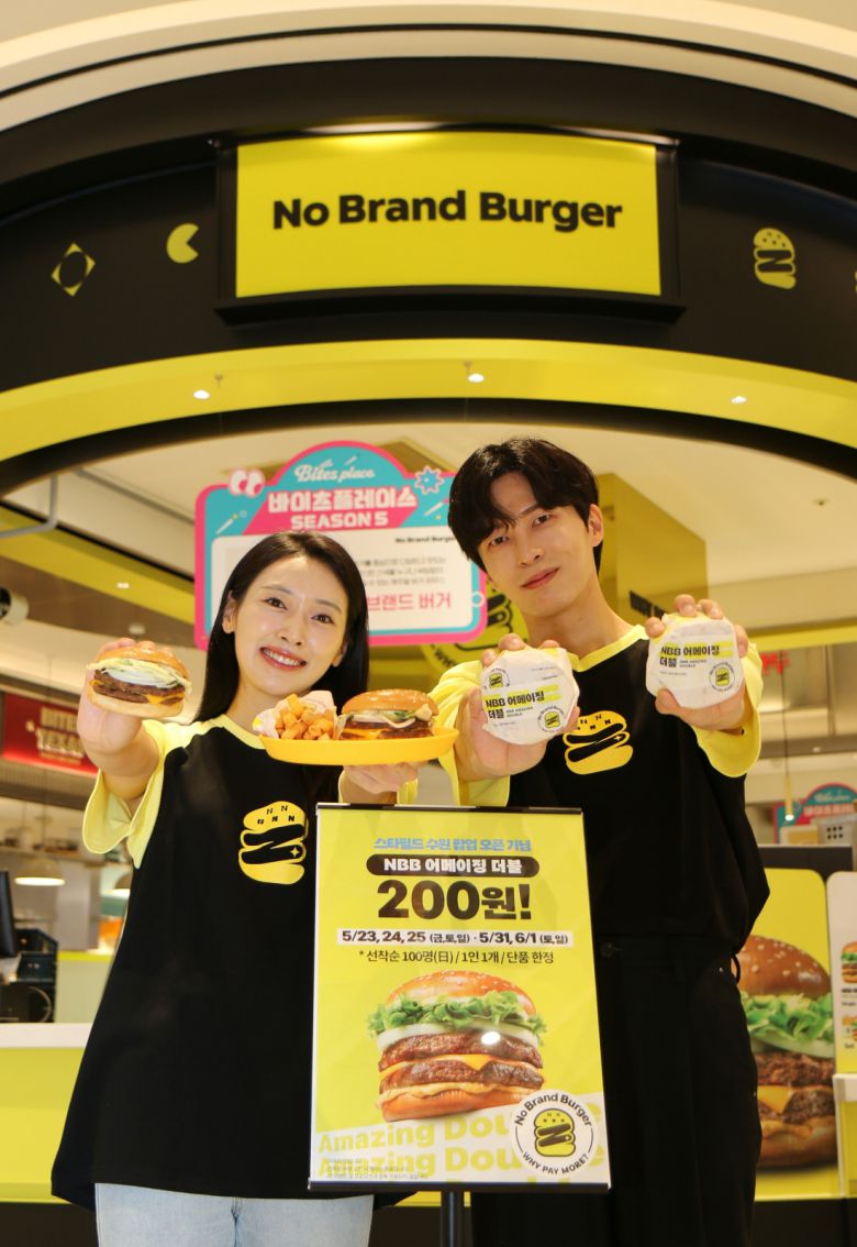 25일 스타필드 수원의 노브랜드 버거 팝업매장에서 모델들이 ‘NBB 어메이징 더블’ 단품을 200원에 제공하는 행사를 소개하고 있다. 제품은 1인당 1개씩 선착순 100명에게만 제공되며, 팝업매장은 7월21일까지 운영된다. 이벤트는 오는 31일부터 다음달 1일까지 이틀간 또 진행될 예정이다.