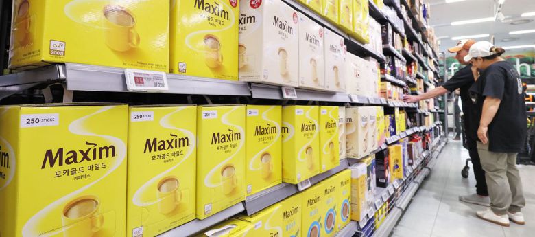 브라질의 이상기후로 인해 커피 생산량이 감소하면서 원두 값이 큰 폭으로 오르자 인스턴트 커피 믹스 제품도 가격 조정에 나섰다. 동서식품은 맥심·카누 등 커피 제품 출고 가격을 평균 7.7% 인상하기로 했다. 사진은 25일 서울의 한 대형 마트 커피 진열대에서 소비자가 커피를 고르는 모습.
