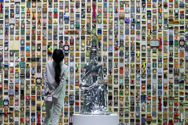 서울 종로구 국립현대미술관 서울에서 열리는 MMCA 서울 상설전 '한국현대미술 하이라이트' 전시 풍경. 한 관람객이 강익중 작가의 '삼라만상'을 감상하고 있다. 뉴시스