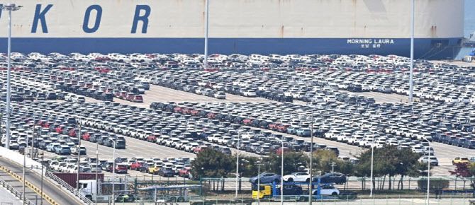 경기 평택항 자동차 전용부두에 선적을 기다리는 수출용 자동차. (사진=뉴시스) |