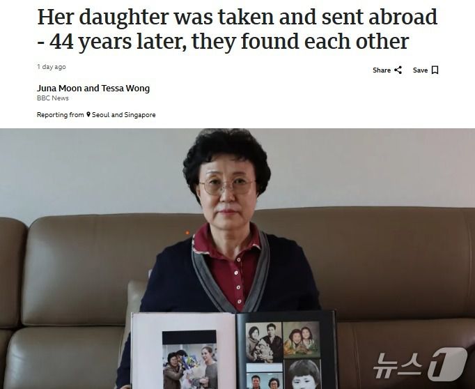 BBC는 24일(현지시간) 약 50년 전 딸을 잃고 최근 재회한 한태순 씨의 사연을 소개하며 아이들이 사실상 수출 상품으로 인식되면서 납치돼 해외에 입양된 사례까지 있었다고 전했다.