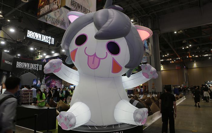 한 가지 특이한 부분은 부스 일부가 아닌 대부분을 ‘휴게 공간’으로 만들었다는 점이다. ‘브라운 더스트’의 밈 캐릭터인 ‘윾돌이’를 전면에 내세우고, 다량의 윾돌이 쿠션을 깔아 유저들이 쉬어갈 수 있는 장소를 제공했다. 거의 드러누운 자세로 쿠션에 기대어 쉬는 유저들의 모습은 정말 편안해 보였다.