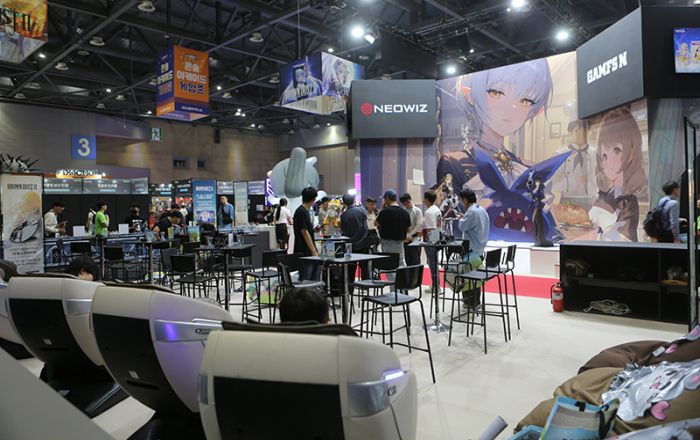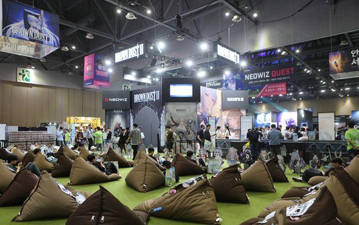 이번 플레이엑스포에서 가장 이색적인 부스를 뽑자면 단연코 네오위즈일 것이다. 네오위즈는 20부스 규모의 인디게임관에서 자사의 퍼블리싱 타이틀을 선보이는 한편, ‘브라운 더스트 2’를 메인으로 내세운 50 부스 규모의 휴게 공간을 마련했다.