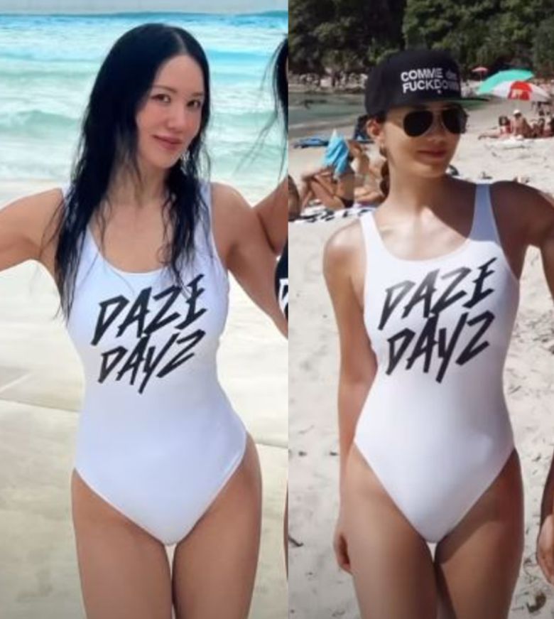 25일 엄정화는 자신의 인스타그램에 과거와 현재를 나란히 비교한 사진 한장을 공개했다. 공개된 사진 속 엄정화는 흰색 수영복을 입고 해변에서 포즈를 취하며 눈부신 자연광 아래 여유로운 미소를 띠고 있다. 놀랍게도 이 수영복은 그녀가 2015년 착용했던 것과 동일한 것으로 밝혀졌다.