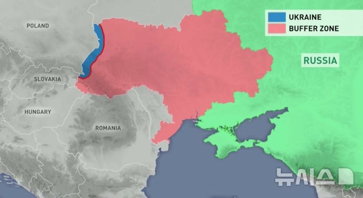 크름반도와 동남부 4개 지역(도네츠크·루한스크·자포리자·헤르손)은 러시아 영토로 표기하고, 서쪽 끝 폴란드 접경지역 일부를 제외한 나머지 전역은 완충지대로 나타냈다.