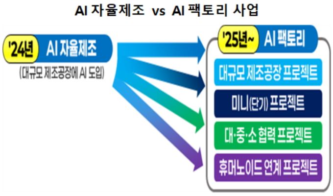산업부는 제조 AI 도입의 시급성과 현장 수요 등을 감안해 기존 'AI 자율제조'를 'AI 팩토리'로 전면 확대 개편하고, 사업의 양적·질적 고도화를 추진할 계획이다.