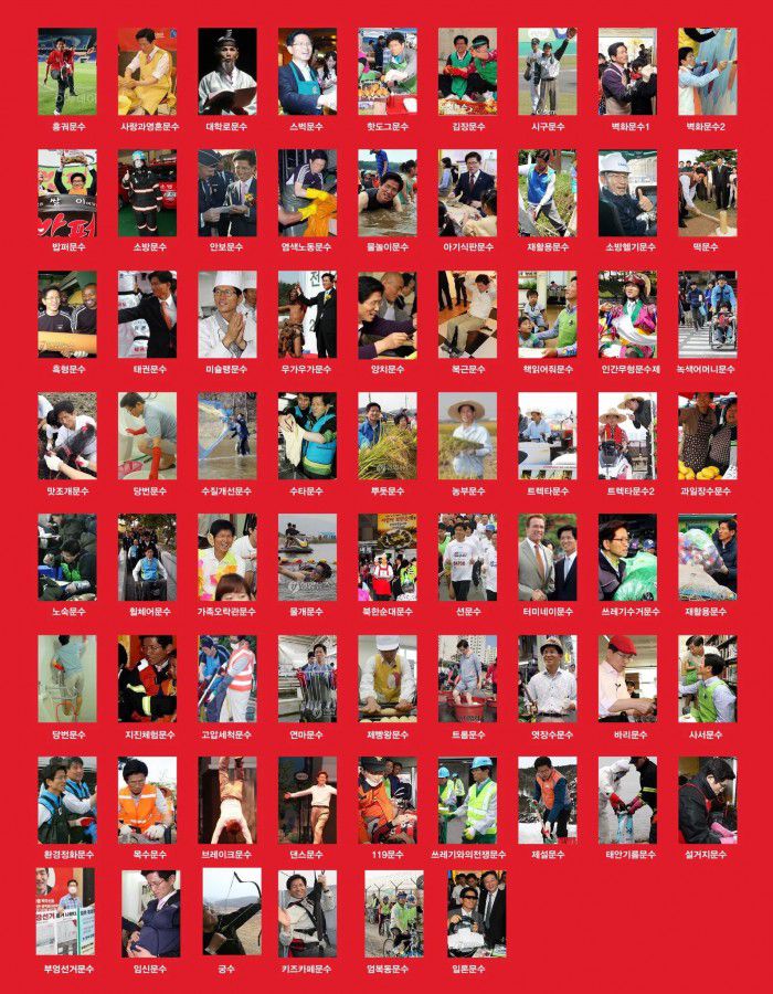 직업 현장 외에도 각종 체험, 봉사, 행사 사진 등 분야를 망라하고 다양한 장소에서 포착된 김 후보의 모습을 사진으로 올리는 움직임이 이어졌다. 이러한 이미지 시리즈는 김 후보의 진지하고 적극적인 모습이 역설적으로 유머러스한 이미지가 되어 누리꾼들 사이에서 장난스러운 놀이처럼 번졌다. 누리꾼들은 "안 가본 데가 없고, 안 해본 것도 없다", "파도파도 계속 다른 사진이 나오니 포켓몬 스티커 모으는 것 같다" 등의 반응을 내놨다.