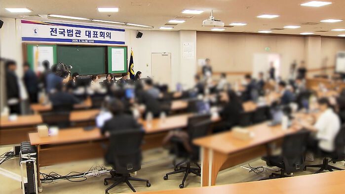 [김예영/전국법관대표회의 의장 : 여든여덟 명이 모였기 때문에 의사 정족수가 갖추어졌습니다. 지금부터 2025년 제2회 전국법관대표회의 임시회의를 시작하겠습니다.]