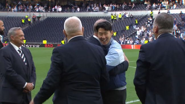 손흥민은 스티프 페리맨과 마틴 치버스, 오스발도 아르딜레스 등 전설적인 토트넘 선배들의 축하를 받으며 팬들에게 인사를 건넸다. 그는 관중들과 한껏 우승의 기쁨을 만끽한 뒤에야 부주장 제임스 매디슨에게 트로피를 건네줬다. 토트넘도 손흥민이 트로피를 흐뭇하게 바라보는 영상을 올리며 "진정한 전설(true legend)"이라고 적었다.