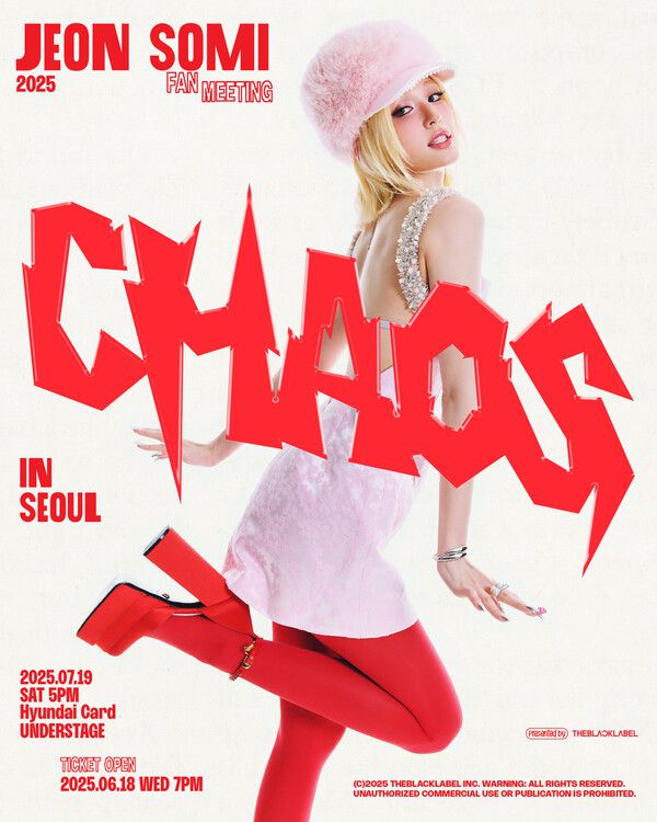 소속사 더블랙레이블은 26일 공식 SNS 채널을 통해 전소미의 단독 팬미팅 'JEON SOMI 2025 FAN MEETING [CHAOS] IN SEOUL'의 포스터와 예매 일정을 공개했다.