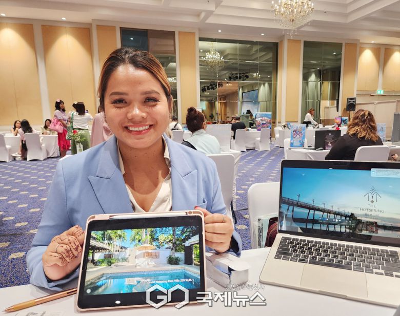 (태국=국제뉴스) 유지현 기자 = 8일 태국 푸켓 로얄푸켓시티호텔에서 열린 '제2회 트래블페어 in 푸켓' 테이블톱 행사 중 더 핫스프링 비치 리조트 & 스파 상담 테이블.