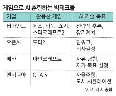 2016년 바둑기사 이세돌과의 대국으로 화제가 됐던 딥마인드는 AI의 직관적인 전략과 장기 계획 능력 학습을 위해 체스, 바둑 등을 활용했다. 이세돌을 꺾은 딥마인드는 게임사 블리자드와 손잡고 블리자드의 유명 실시간 전략게임인 스타크래프트2 AI를 개발하기도 했다. 딥마인드는 "정답도 없고 실시간인 스타크래프트는 알파고보다 훨씬 더 어렵다"며 "인간 같은 AI를 만들고 싶다면 게임을 훈련장으로 삼아야 한다"고 설명했다.