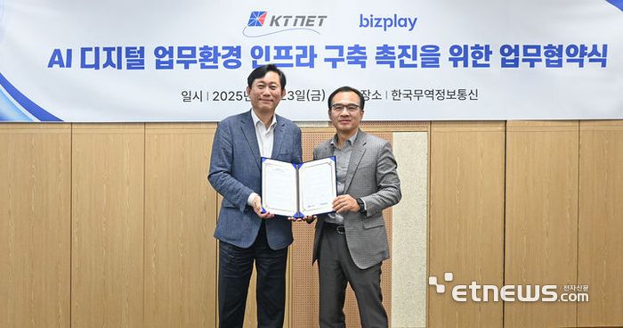 한국무역정보통신은 비즈플레이와 인공지능(AI) 디지털 업무환경 인프라 구축 촉진을 위한 업무협약을 체결했다고 26일 밝혔다.