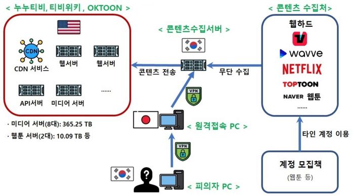 불법 스트리밍 웹사이트 '티비위키'와 불법 웹툰 게시 사이트 '오케이툰'도 운영했으며, 이들 사이트에서 불법 영상물·웹툰 각각 수십만건이 유통된 것으로 파악됐다.