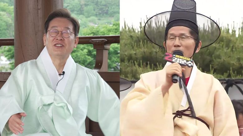 국민의힘 김문수 후보는 선비의 고장, 경북 안동을 방문하면서 이렇게 한복을 차려 입었습니다.
