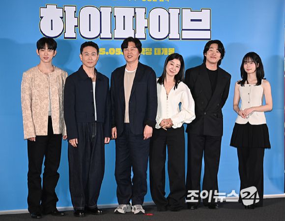 배우 진영, 오정세, 김희원, 라미란, 안재홍, 이재인이 26일 오후 서울 용산구 CGV용산아이파크몰에서 영화 ‘하이파이브’ 언론시사회에서 포토타임을 갖고 있다. [사진=곽영래 기자] |
