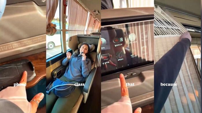특히 버스 안에 무선 충전기, 개인용 TV, 등받이 조정 좌석, 측면 조명, 그리고 사생활 보호를 위한 커튼 등 다양한 편의 시설이 있어 놀라웠다며 버스 내부를 고급 호텔에 비유하며 극찬했습니다.