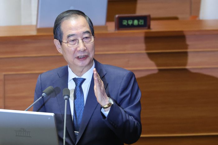 한덕수 전 국무총리가 지난해 12월 11일 국회 본회의에서 진행된 ‘윤석열 대통령 위헌적 비상계엄 선포 내란행위 관련 긴급현안질문’에서 답변하고 있다. [연합뉴스] |