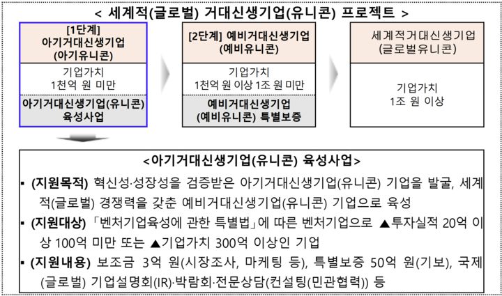 (MHN 조민서 인턴기자) 중소벤처기업부가 '글로벌 유니콘 프로젝트'를 통해 스타트업의 성장 단계별 맞춤 지원에 나서고 있다.